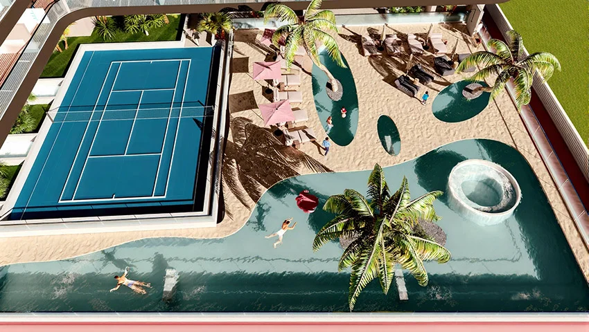 The development features a refined collection of luxury studios, 1 and 2-bedroom apartments, along with a limited selection of sky villas. Each residence is thoughtfully planned with elegant interiors, functional layouts, and quality finishes that enhance comfort and everyday living. Expansive windows and well-designed spaces create bright, welcoming homes that connect seamlessly with the surrounding greenery.