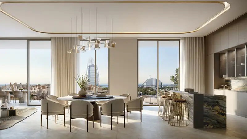 Each residence is crafted for comfort and sophistication, with spacious open-plan living areas, modern kitchens, and private bedrooms with en-suite bathrooms. Large balconies and terraces offer stunning views, including iconic sights like the Burj Al Arab and Dubai skyline, delivering a seamless blend of luxury, functionality, and everyday elegance.