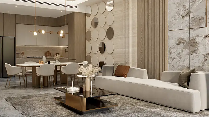 Residents are welcomed by a grand lobby with warm tones, premium textures, and bespoke lighting. Lifestyle amenities include a podium-level pool with water lounges, a kids’ splash pad, shaded seating decks, indoor and outdoor gyms, steam rooms, saunas, and tranquil wellness areas. Situated in one of Dubai’s fastest-growing waterfront destinations, Ocean Crest combines privacy, luxury, and the natural beauty of coastal living—all while remaining close to the city’s vibrant attractions.